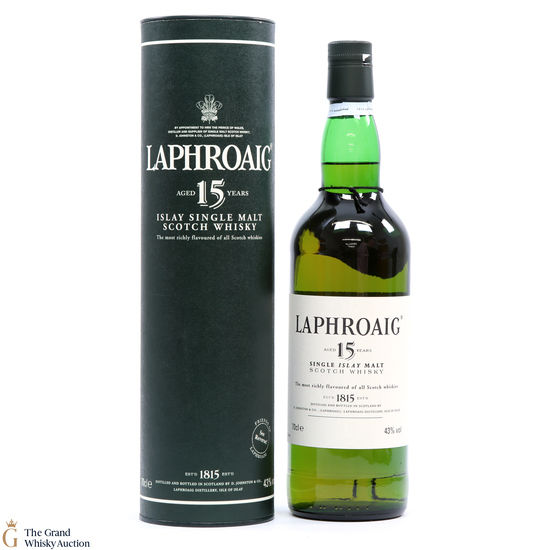 A smart old bottle of Laphroaig, bottled to celebrate the great following that this Islay distillery has.