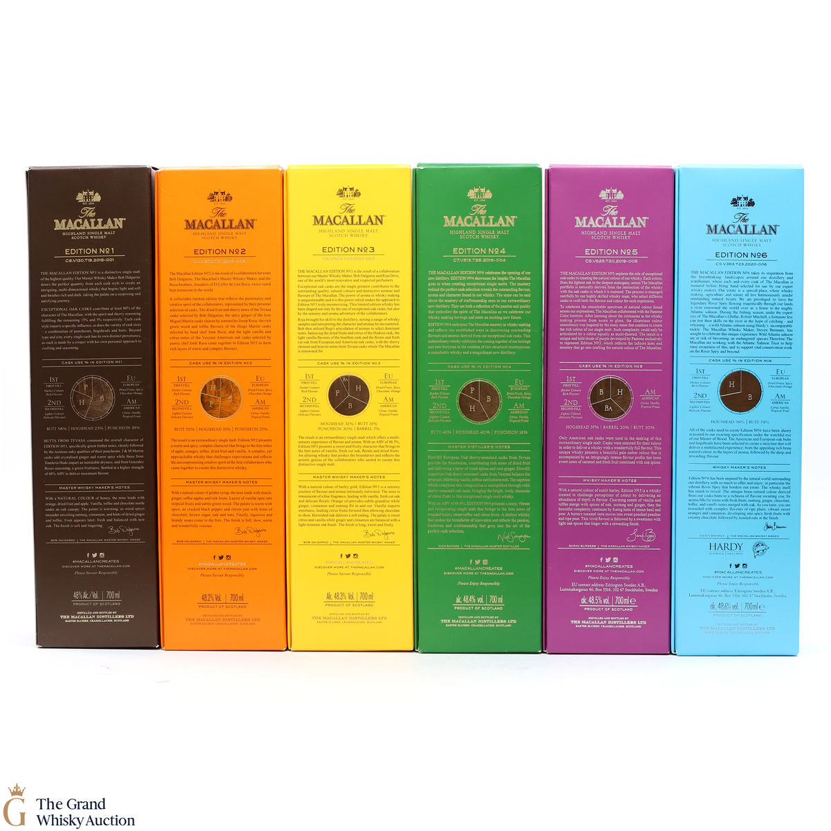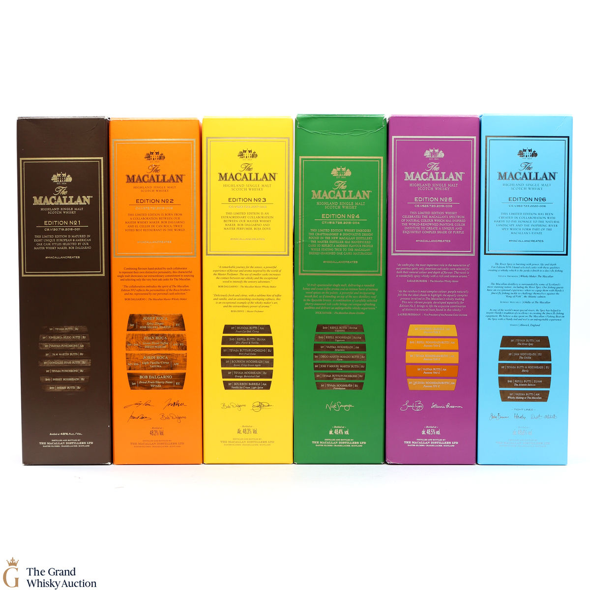 This lot brings together the Macallan Edition set to date, comprising of Edition no. 1, 2, 3 4, 5 & 6 in the annual limited edition series.