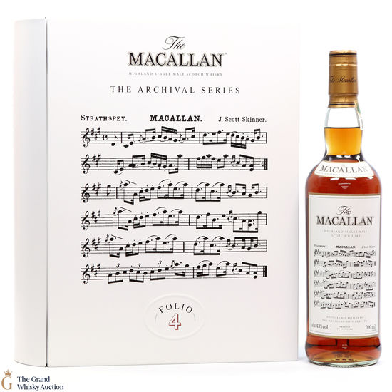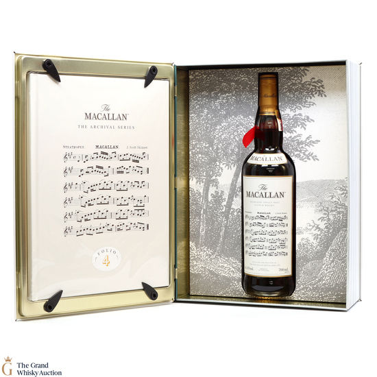 The fourth edition in the Archival Series from The Macallan. Folio 4 remembers the legendary advertising campaigns of the 1970s, 1980s and 1990s that brought The Macallan to the public’s attention outside of Scotland. It is presented in a beautiful book shaped, tin case. It features an advertisement including a Strathspey composed by James Scott Skinner (1843-1927). The advert notes that Skinner was so moved by his favourite malt he created a unique piece of music featuring his signature lilting notes with the simple catchphrase: “The Macallan. The Malt.”