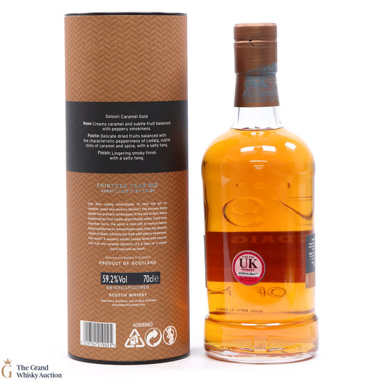 A wonderful peated whisky, this single malt was distilled at the Ledaig Distillery on the island of Tobermory off the west coast of Scotland. Matured for a total of 13 years, this malt was finished in Amontillado casks from the Montilla region of Spain.