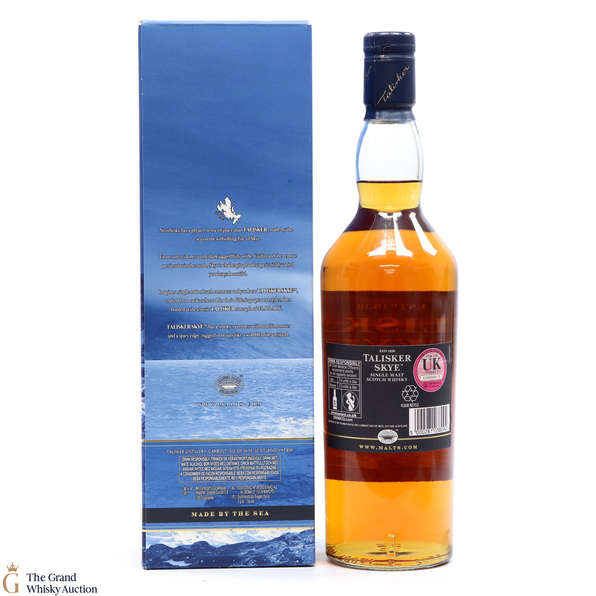 Talisker single malt scotch whisky is from the oldest distillery on the Isle of Skye. Talisker Skye was introduced in early 2015, named after the beautiful island on which the distillery resides. It has been matured in a combination of refill and toasted American oak casks, with a slightly higher proportion of toasted casks.