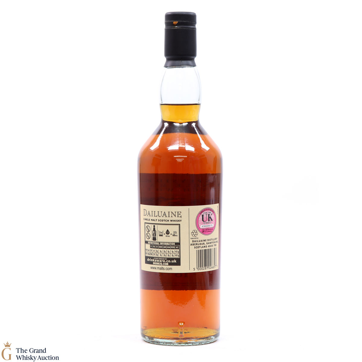 Due to the various ages of bottles and their seals, the condition of liquid is at the buyer's discretion and no claim can be lodged against failure/leakage in transit. Loss and breakage cover is available at 3% of the hammer price as standard. If the lot is not insured, no claim can be lodged against the courier or The Grand Whisky Auction for breakage or loss in transit.
