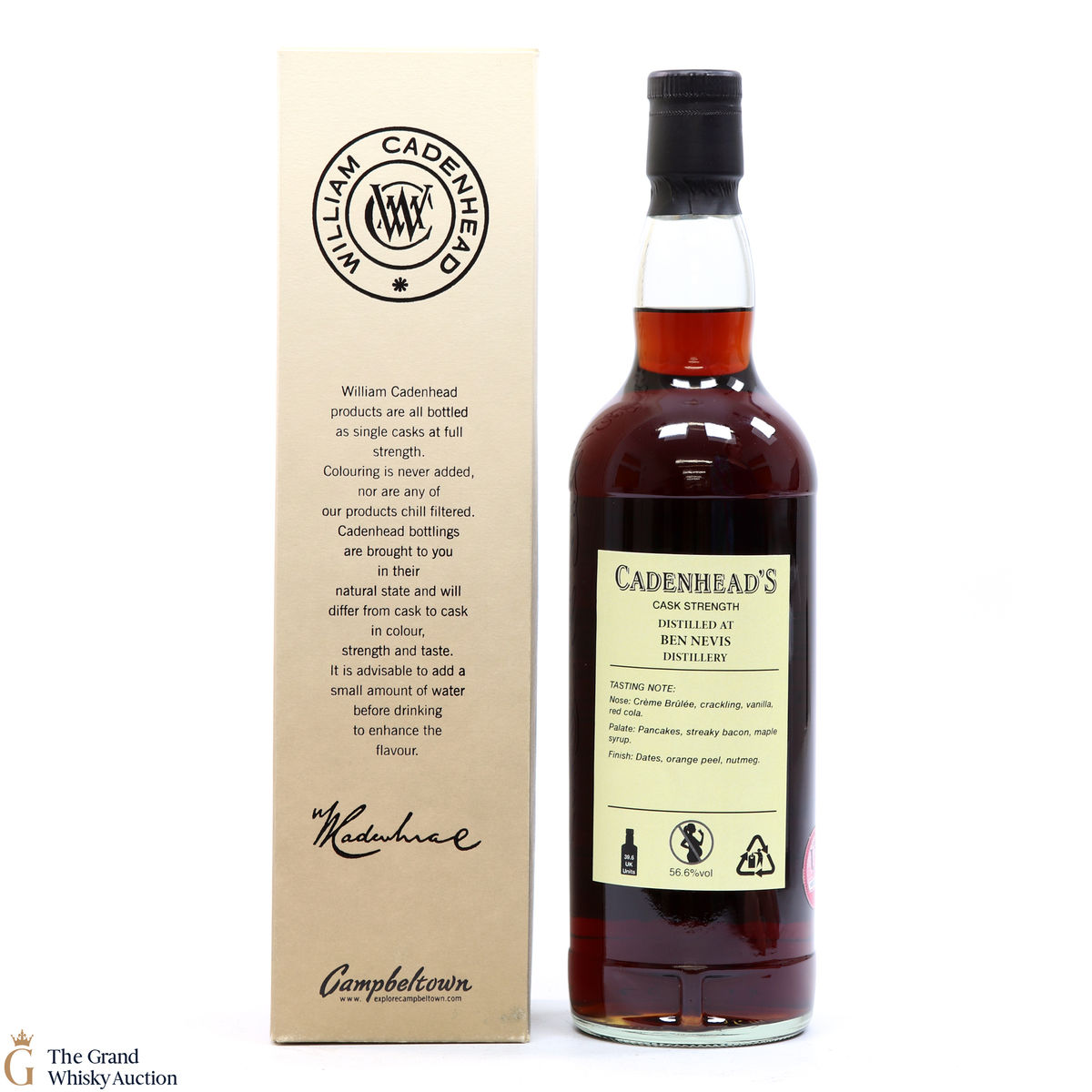This Highland single malt was distilled in 2012 at the Ben Nevis Distillery. It was matured in an oloroso sherry cask for 8 years before being bottled by WM Cadenhead. Bottled at 56.6% in 2021.