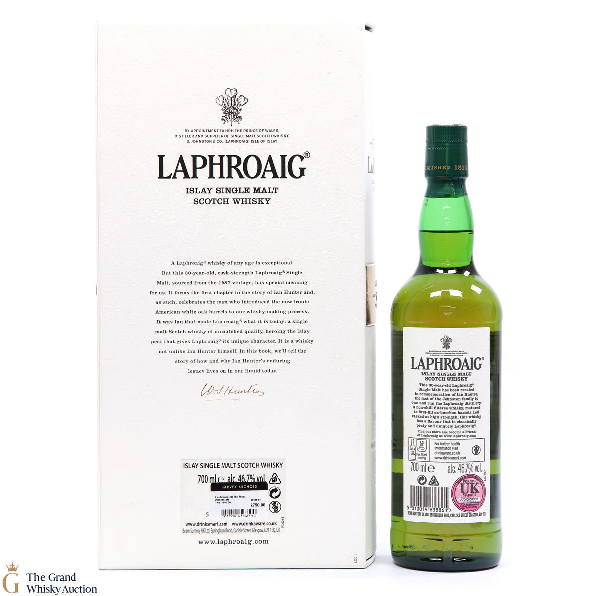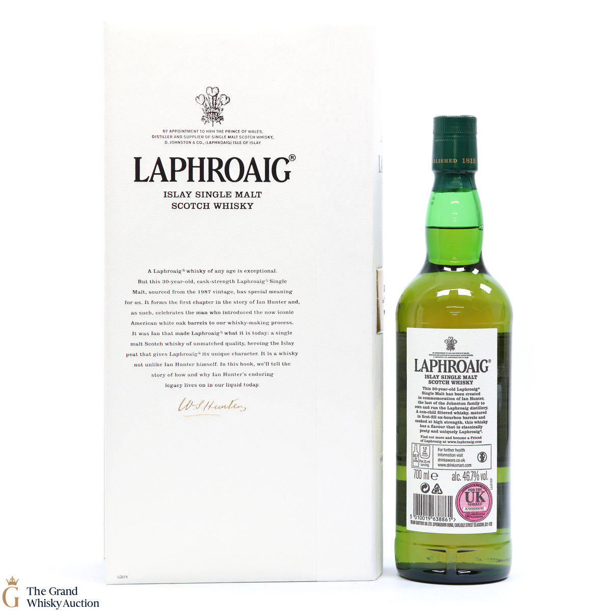 This is a 30 year old cask strength bottling from the 1987 vintage. This bottle forms the first chapter to the story of Ian Hunter and celebrates the man who introduced the iconic American white Oak barrels to the whisky making at Laphroaig. It is said that it was Ian who made Laphroaig what it is today.