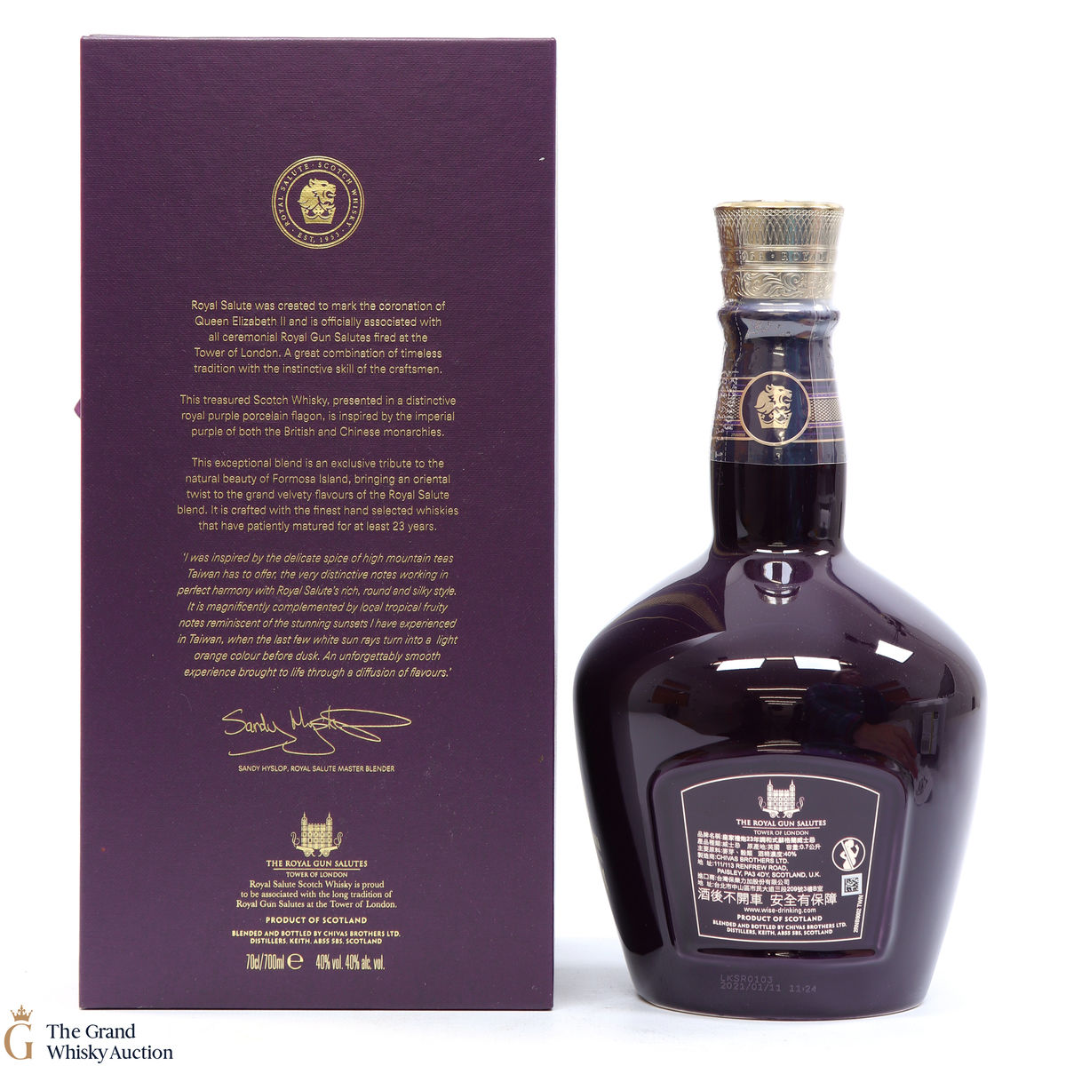 This 21 Year Old is presented in a unique porcelain flagon, painted with a sapphire glaze reminiscent of the gems set within the Imperial State Crown.