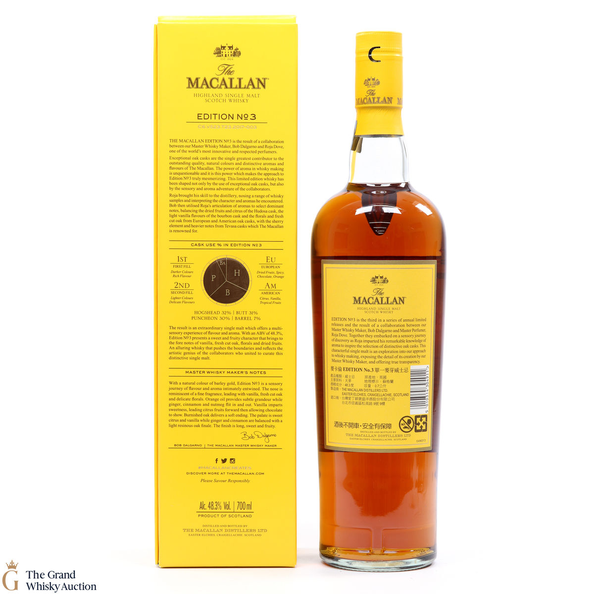 Edition No.3 was a collaboration between master perfumer Roja Dove and master whisky maker Bob Dalgarno. With Dove's remarkable sensory knowledge, Dalgarno shaped the character of Edition No.3 from a combination of European and American oak casks to create a deliciously sweet, single malt with floral notes.