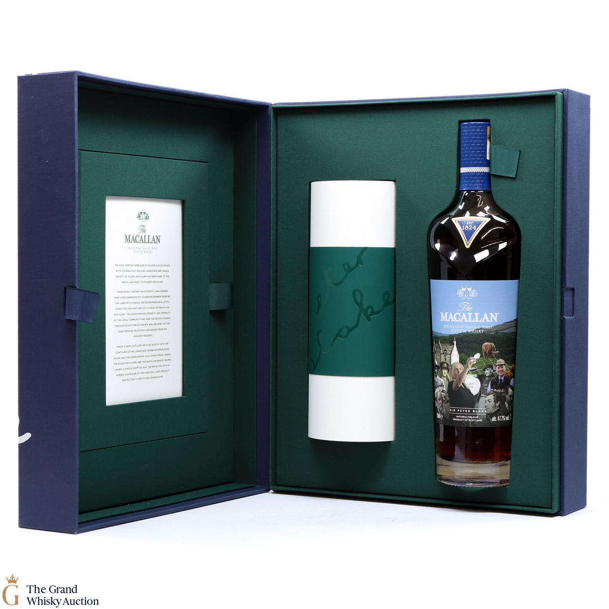 Along with this unique bottle of whisky is a scroll of artwork showing Sir Peter Blake's distinct style and a certificate detailing the history and heritage on which Sir Peter's art was based. There is also a piece of tracing paper which provides information on each character from The Macallan's history that Sir Peter chose to include in his art.