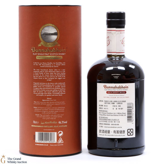 An 18 year old Taiwanese limited edition crafted by Bunnahabhain's master distiller Ian Macmillan. The 'Frenchman''s Rocks' comes from a story traditionally told by the native helmsman.