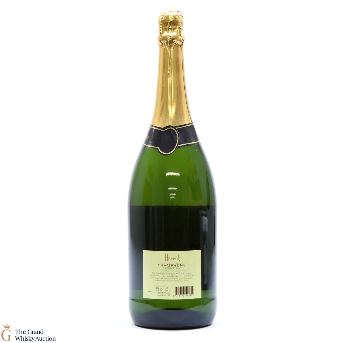 A Harrods bottling of Champagne from France, bottled at 12% ABV. This is a 1.5L bottling.