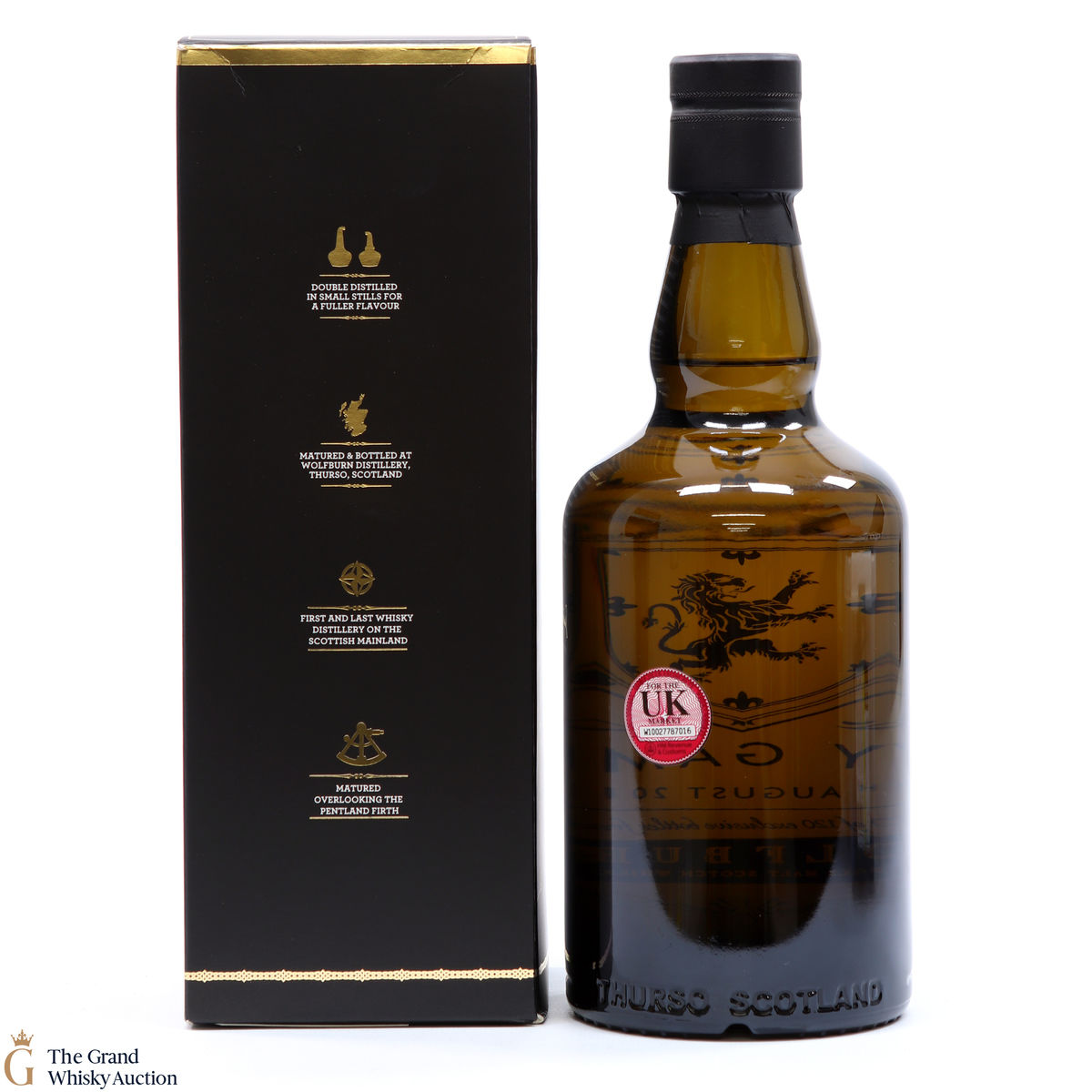Due to the various ages of bottles and their seals, the condition of liquid is at the buyer's discretion and no claim can be lodged against failure/leakage in transit. Loss and breakage cover is available at 3% of the hammer price as standard. If the lot is not insured, no claim can be lodged against the courier or The Grand Whisky Auction for breakage or loss in transit.