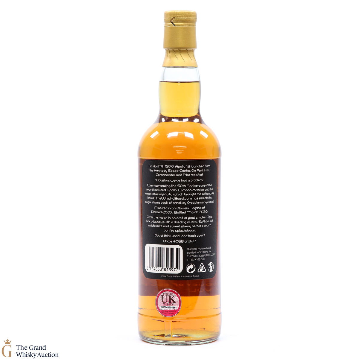 A 2007 vintage Orcadian single malt Scotch whisky from Highland Park to commemorate the 50th Anniversary of the Apollo 13 Moon Mission in 1970.
