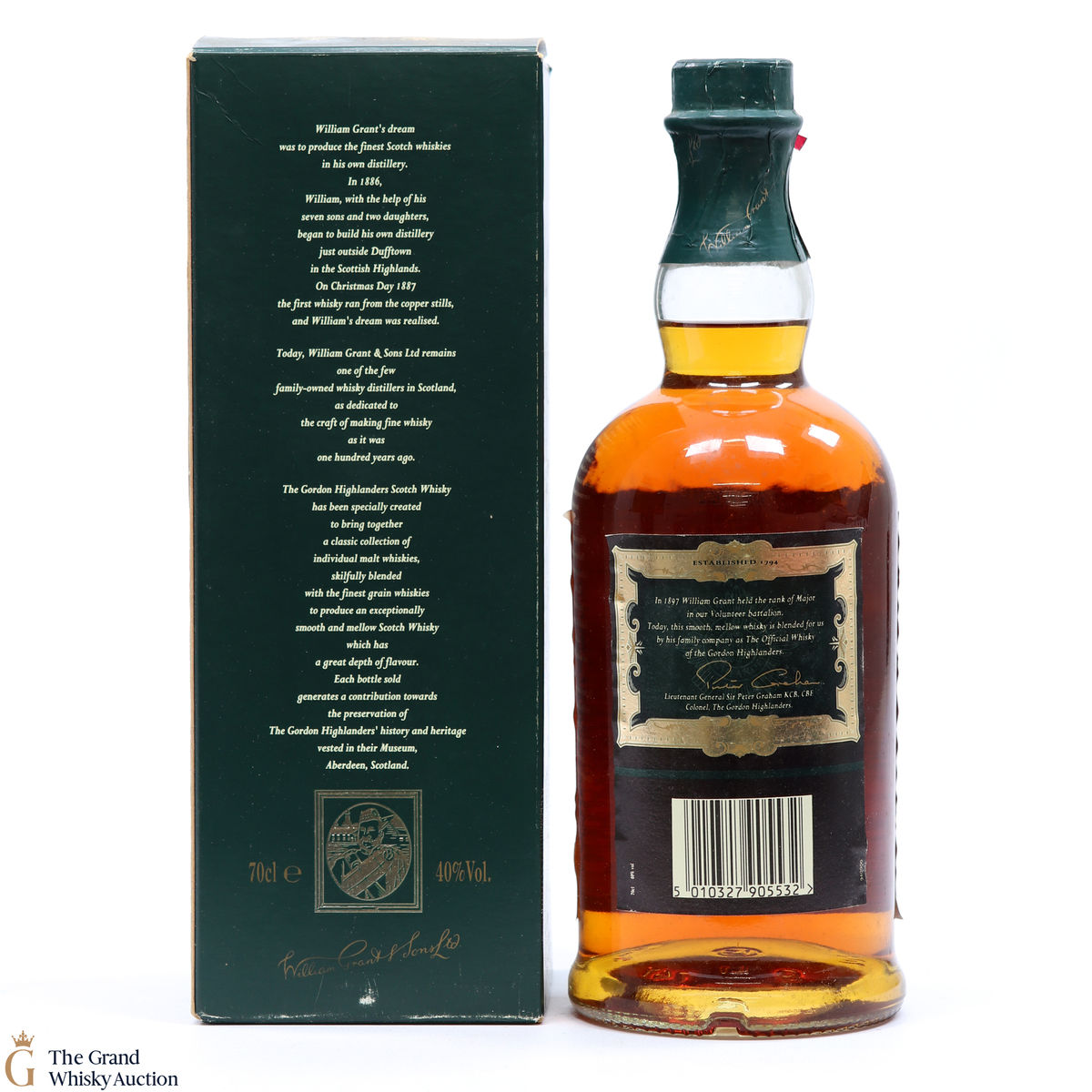 Gordon Highlanders scotch whisky is a blended whisky. It is named after the Gordon Highlanders regiment of the British Army. This bottling celebrates the Bicentenary of the Gordon Highlanders Regiment 1794-1994 which was named after the Clan Gordon.