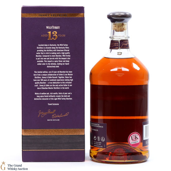 Distilled at the Wild Turkey Distillery in Kentucky USA by Father and Son Master Distillers Jimmy and Eddie Russel, this bourbon whiskey was produced as a travel retail exclusive.