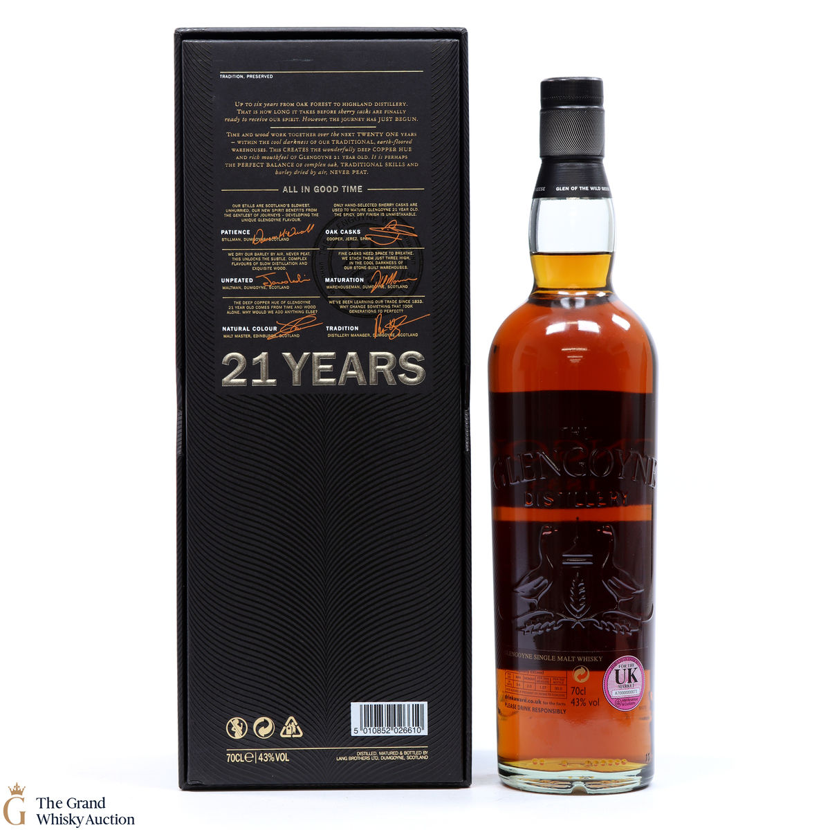 Glengoyne 21 Year Old Won a Gold Medal at the San Francisco World Spirits Competition 2005. This Highland single malt was matured in hand-selected quality first fill European oak sherry casks for 21 years.