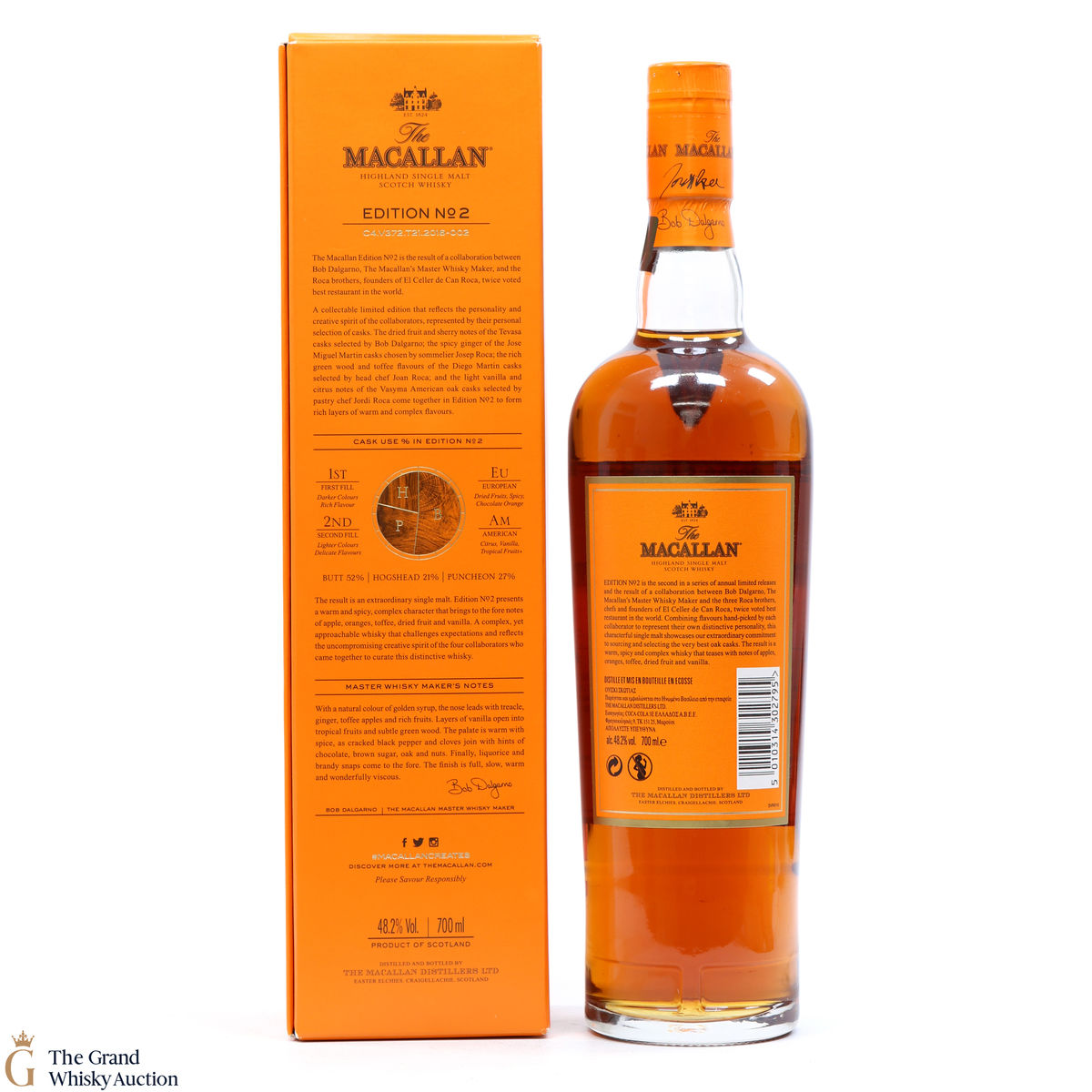 This is the second release from the Macallan Edition series. Edition No.2 is a collaboration between Macallan's master blender Bob Delgarno and legendary Spanish chefs Joan, Josep and Jordi Roca. The Rocas are the three brothers behind El Celler de Can Roca (named Best Restaurant in the World twice by Restaurant magazine). This single malt was drawn from a combination of sherry puncheons, butts and refill hogsheads.