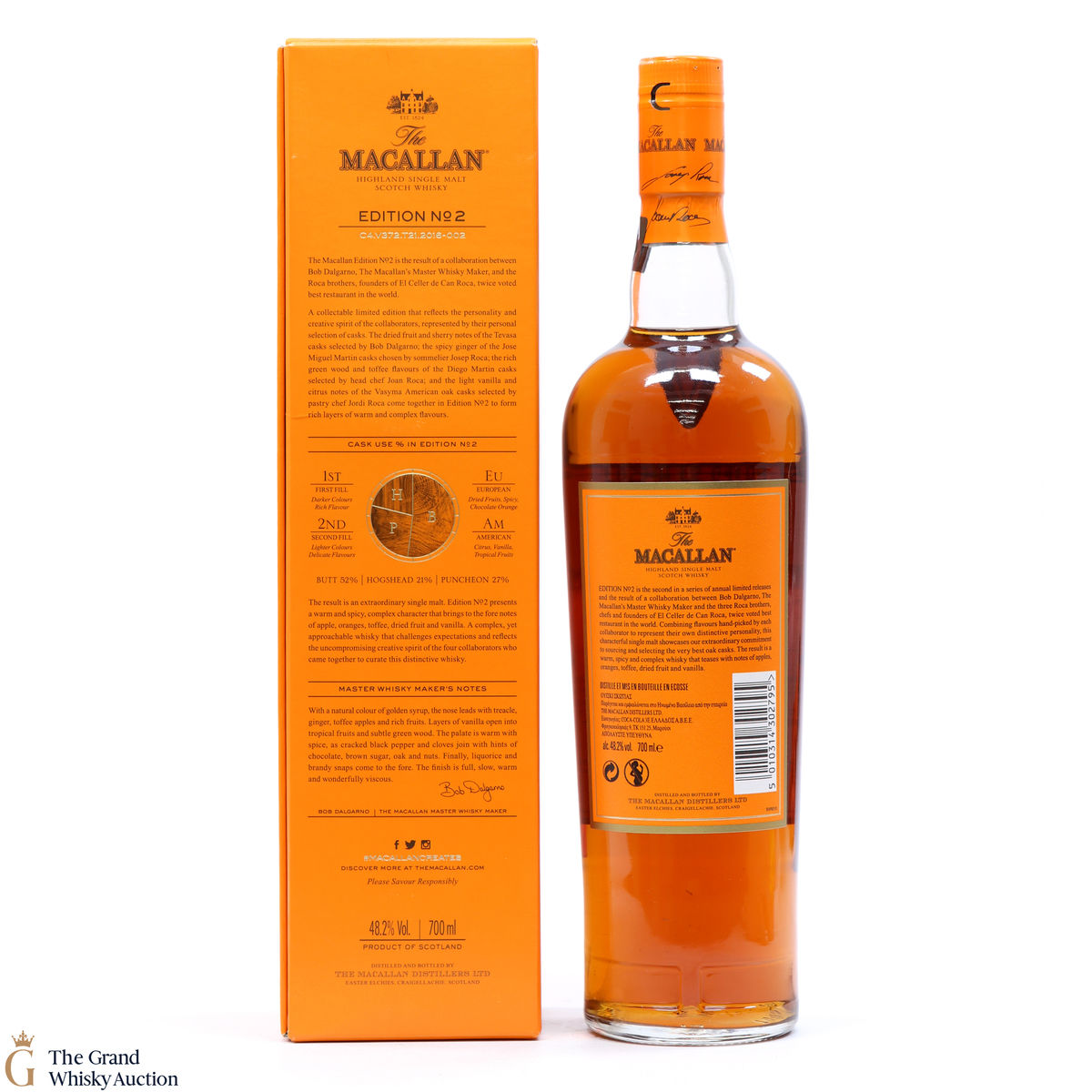 This is the second release from the Macallan Edition series. Edition No.2 is a collaboration between Macallan's master blender Bob Delgarno and legendary Spanish chefs Joan, Josep and Jordi Roca. The Rocas are the three brothers behind El Celler de Can Roca (named Best Restaurant in the World twice by Restaurant magazine). This single malt was drawn from a combination of sherry puncheons, butts and refill hogsheads.