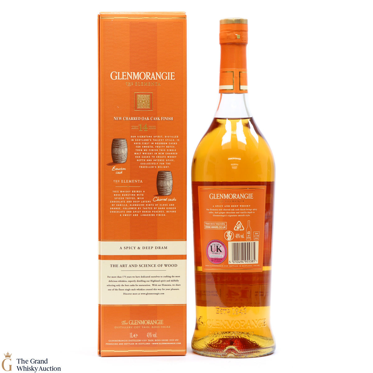 This spicy and deep Elementa celebrates Glenmornagie's skills in wood finishing, an art which brings new depths of flavour to their whisky. Matured initially in American oak bourbon casks to create smoothness and fruity notes and finished in charred oak casks, bringing forth a 14-year-old whisky of woody depth and intense spice. Available exclusively in travel retail.
