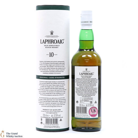 This bottling is from batch 013, original cask strength bottling of the medicinal 10 year old from Islay's bestselling distillery, Laphroaig. In making Laphroaig, malted barley is dried over a peat fire. The smoke from this peat, found only on Islay, gives Laphroaig its particularly rich flavour. This release was bottled at 57.9% in Jan 2021.