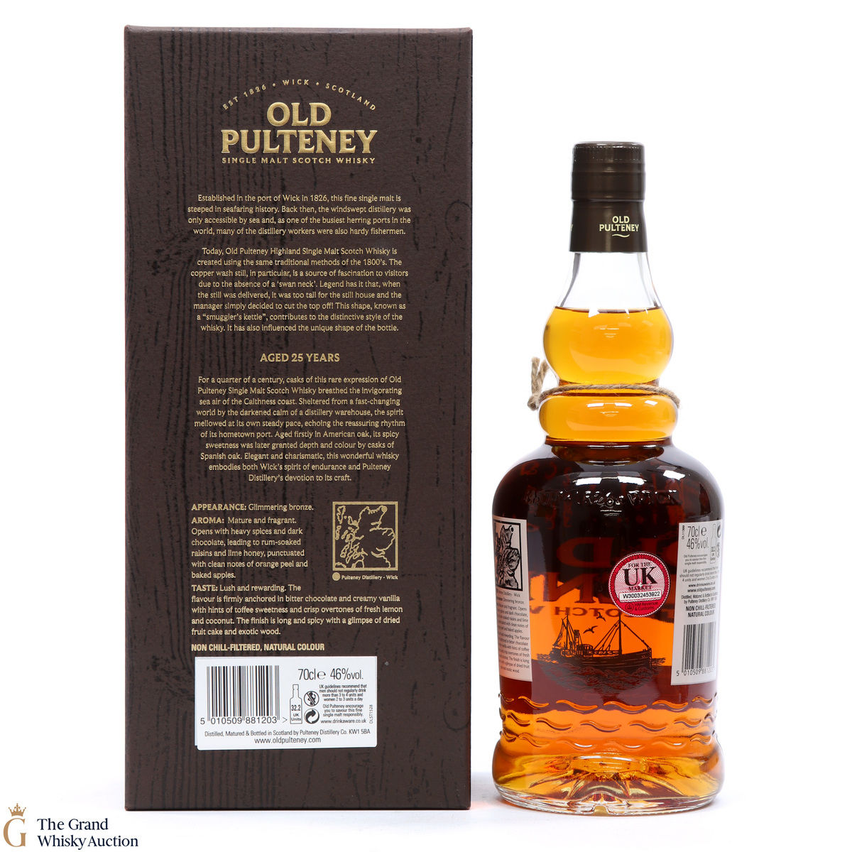 Old Pulteney 25 Year Old is a perfect marriage of American Oak and Spanish Oak. This single malt spent 22 years in bourbon casks before a final 3 years in oloroso sherry Spanish oak butts. Introduced in October 2017, this expression is one of the replacements for Old Pulteney's 17-year-old and 21-year-old bottlings