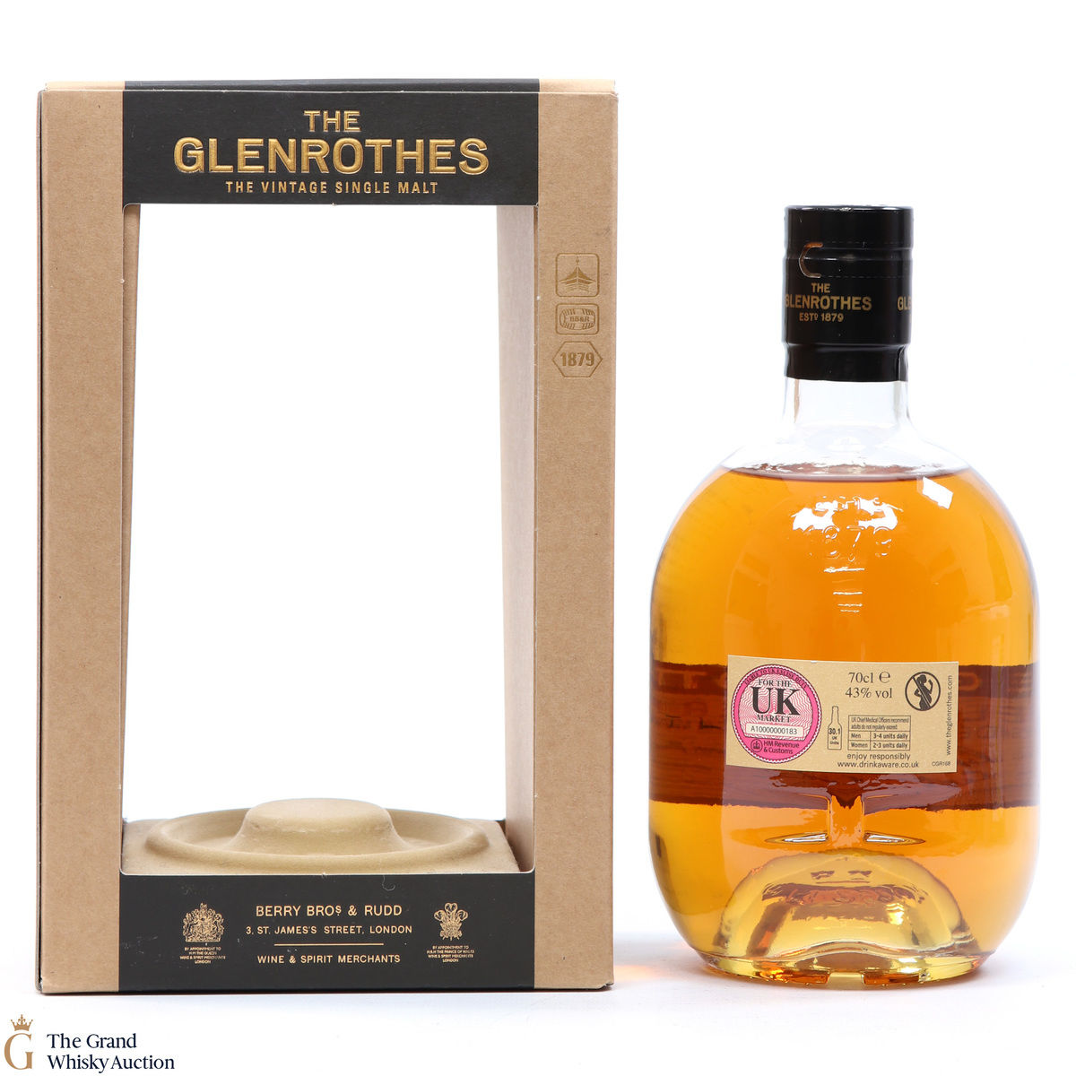 Due to the various ages of bottles and their seals, the condition of liquid is at the buyer's discretion and no claim can be lodged against failure/leakage in transit. Loss and breakage cover is available at 3% of the hammer price as standard. If the lot is not insured, no claim can be lodged against the courier or The Grand Whisky Auction for breakage or loss in transit.