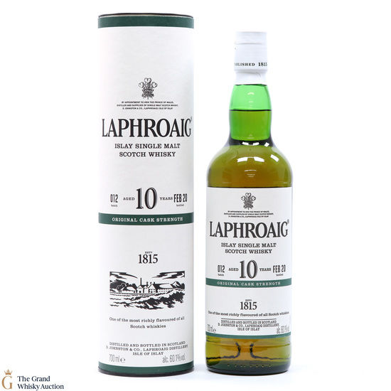 This bottling is from batch 012, original cask strength bottling of the medicinal 10 year old from Islay's bestselling distillery, Laphroaig. In making Laphroaig, malted barley is dried over a peat fire. The smoke from this peat, found only on Islay, gives Laphroaig its particularly rich flavour. This release was bottled at 60.1% in February 2020.