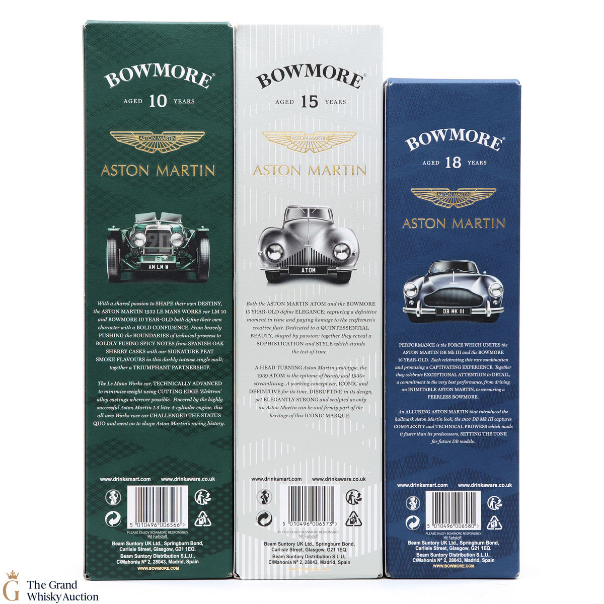 The full collection of the collaboration between Bowmore and Aston Martin, both creating timeless beauty and a lasting legacy. Each edition of the Aston Martin collection features a different car. Included in this lot is edition 1, 2 and 3: