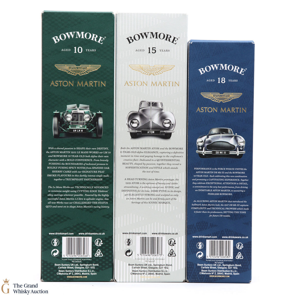 The full collection of the collaboration between Bowmore and Aston Martin, both creating timeless beauty and a lasting legacy. Each edition of the Aston Martin collection features a different car. Included in this lot is edition 1, 2 and 3: