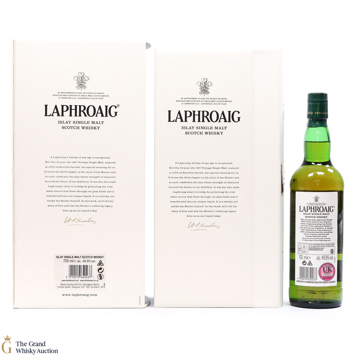 This is a 33 year old single malt, distilled in 1987 and matured in ex-bourbon barrels. This bottle forms the third chapter "Source Protector" to the story of Ian Hunter and celebrates the man who introduced the iconic American white Oak barrels to the whisky making at Laphroaig. It is said that it was Ian who made Laphroaig what it is today.