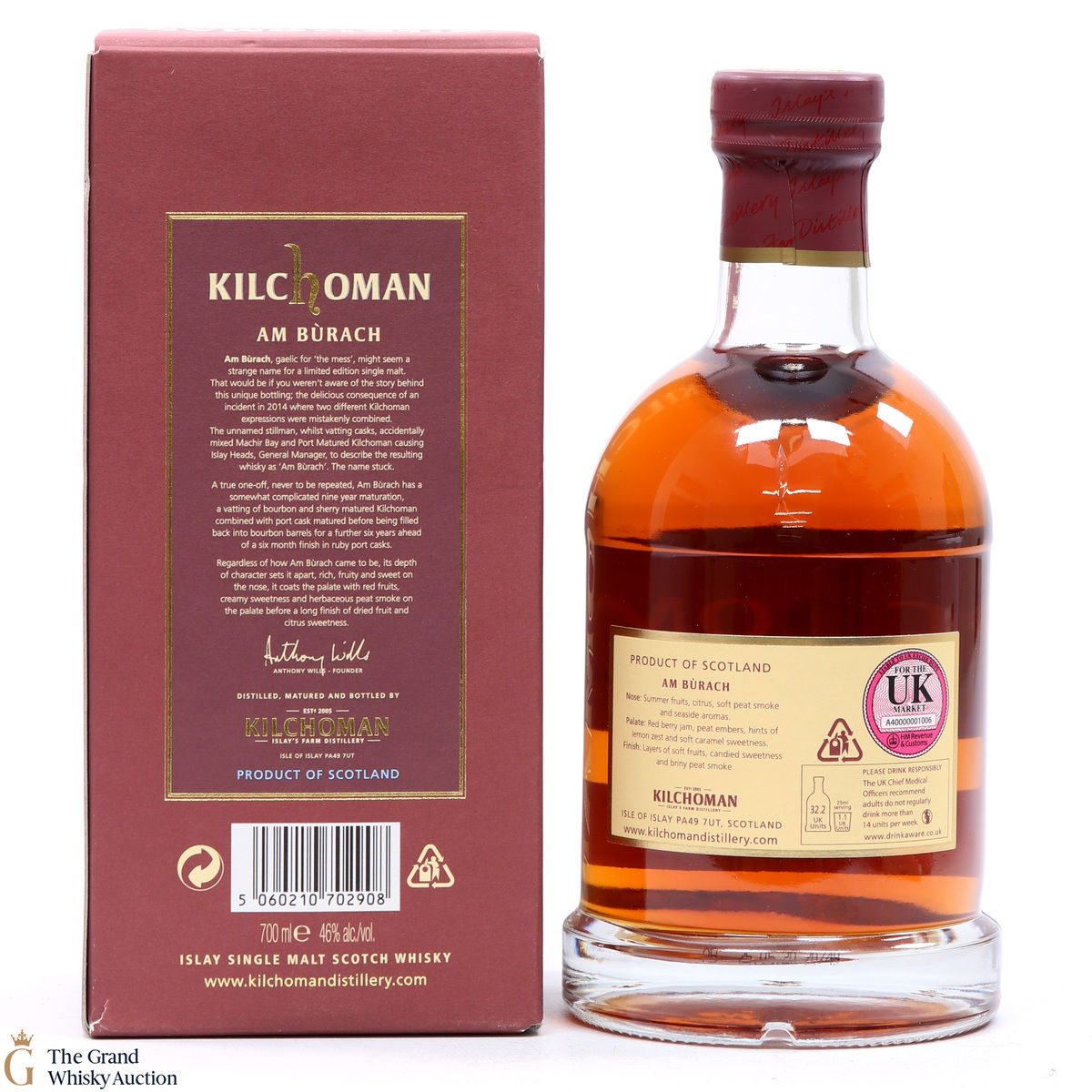 Kilchoman's Am Bùrach - meaning "the mess" in Gaelic! Created when a Stillman mixed together some Machir Bay and Port Matured Kilchoman while vatting casks! The whisky was filled back into Bourbon barrels and eventually given a finishing period in ruby port casks creating an unintentionally tasty dram!