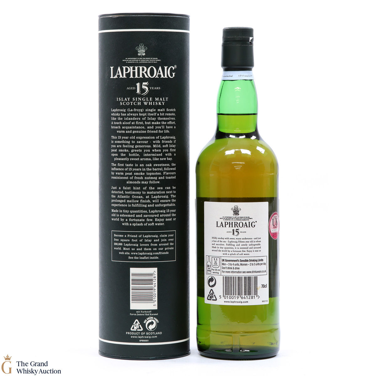 A smart old bottle of Laphroaig, bottled to celebrate the great following that this Islay distillery has.