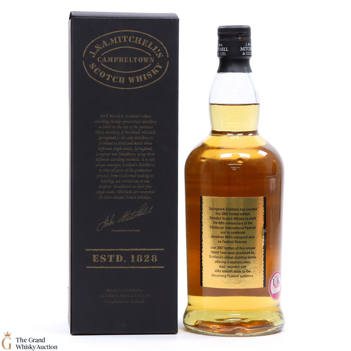 Blended and bottled by J & A Mitchell & Co, this blended malt from Springbank was bottled to celebrate the 60th anniversary of the Edinburgh International Festival.