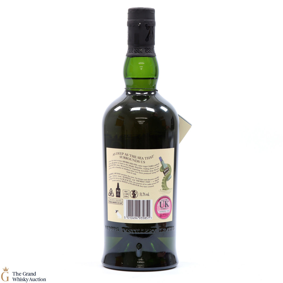 This is a committee exclusive release of the Ardbeg Kelpie, a single malt released in 2017. It was matured in casks made from virgin Black Sea oak and more traditional bourbon casks. The Committee Release is bottled at the higher strength of 51.7% ABV (while the standard Ardbeg Kelpie has bottled at 46% ABV).