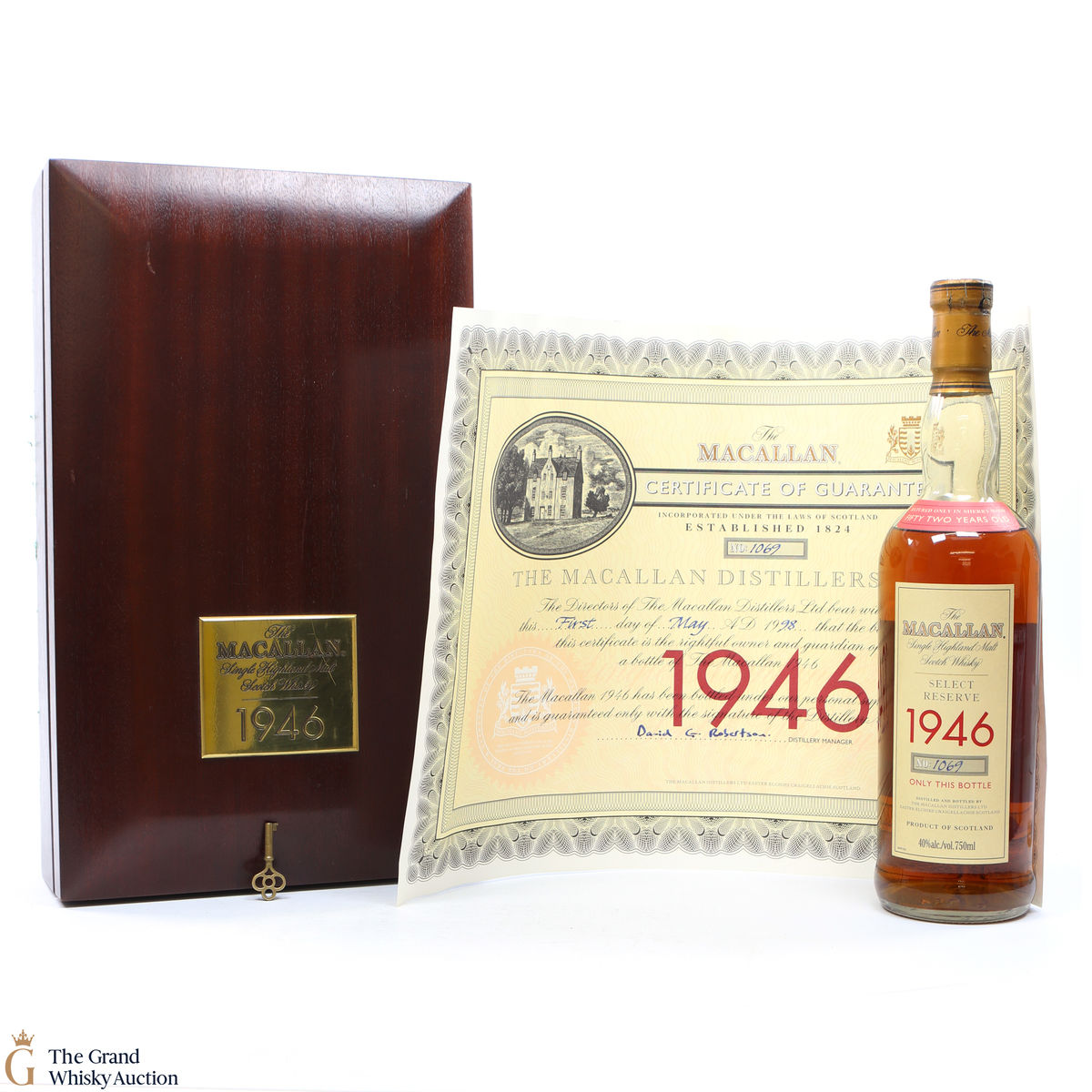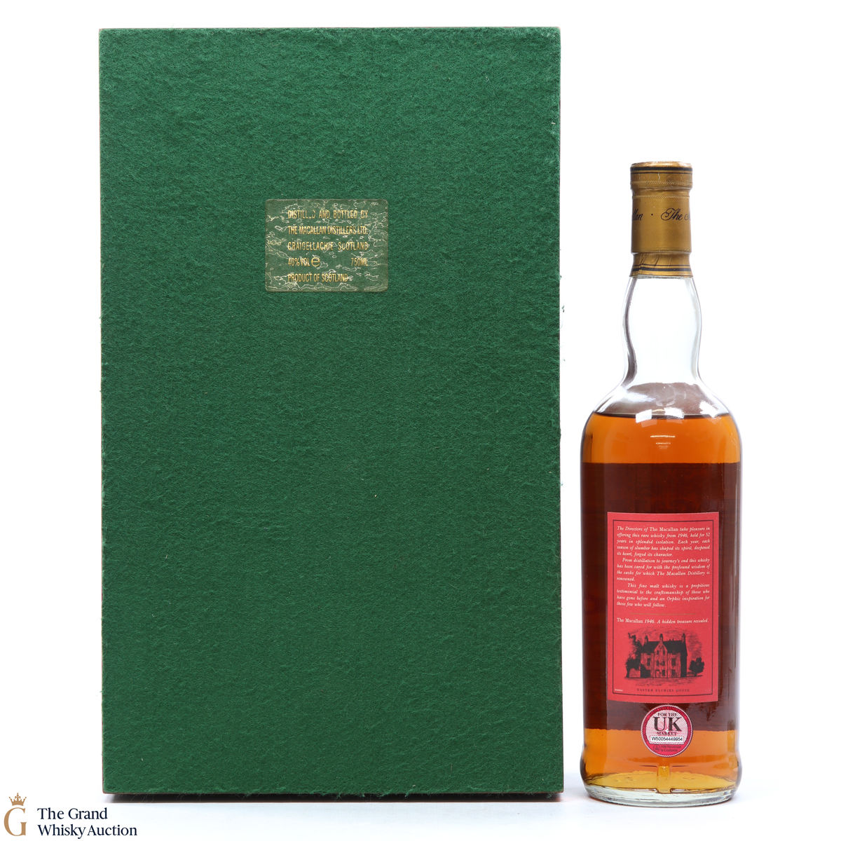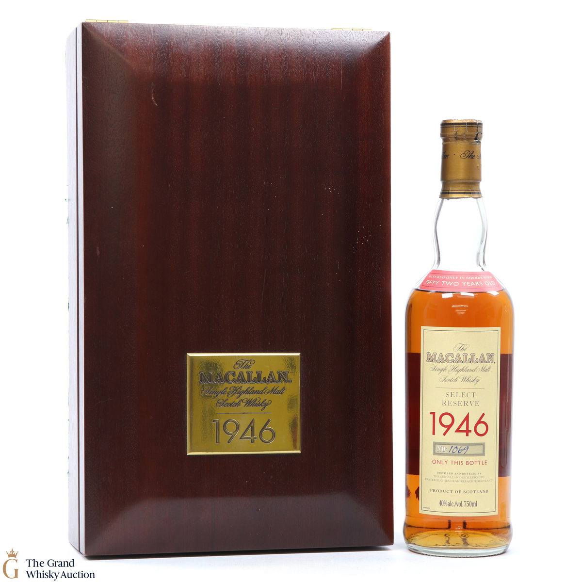 Distilled at the Macallan Distillery in 1946, this fantastic single malt underwent maturation in sherry wood for 52 years. Incredibly rare, this bottling comes with a display case and certificate. The perfect addition to a Macallan fan's collection.