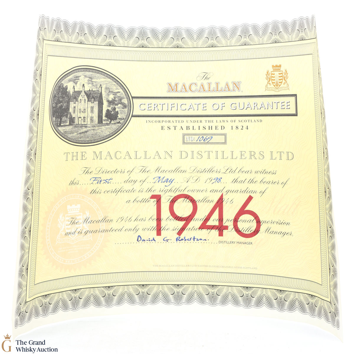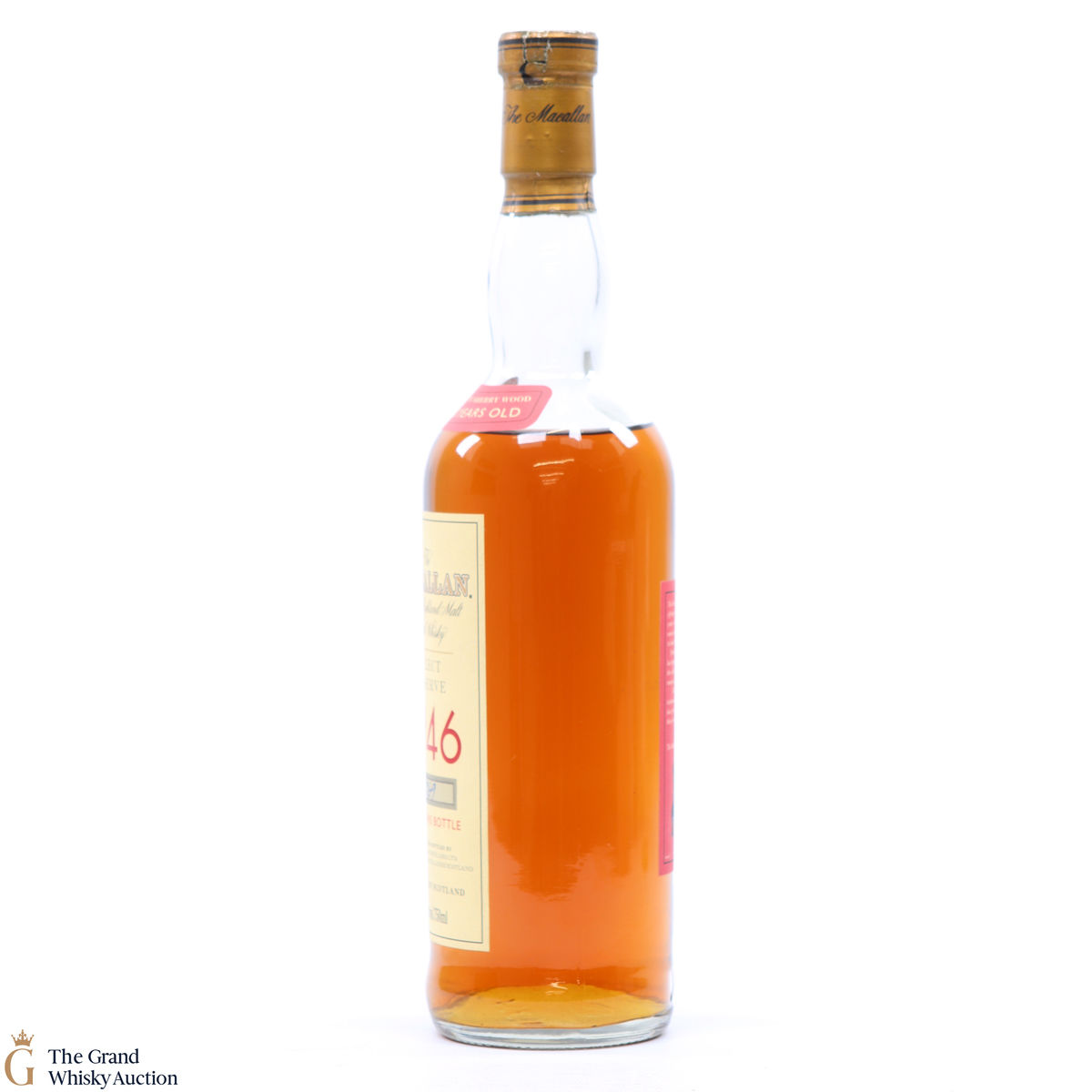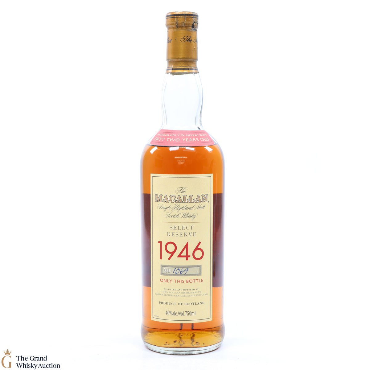 Distilled at the Macallan Distillery in 1946, this fantastic single malt underwent maturation in sherry wood for 52 years. Incredibly rare, this bottling comes with a display case and certificate. The perfect addition to a Macallan fan's collection.