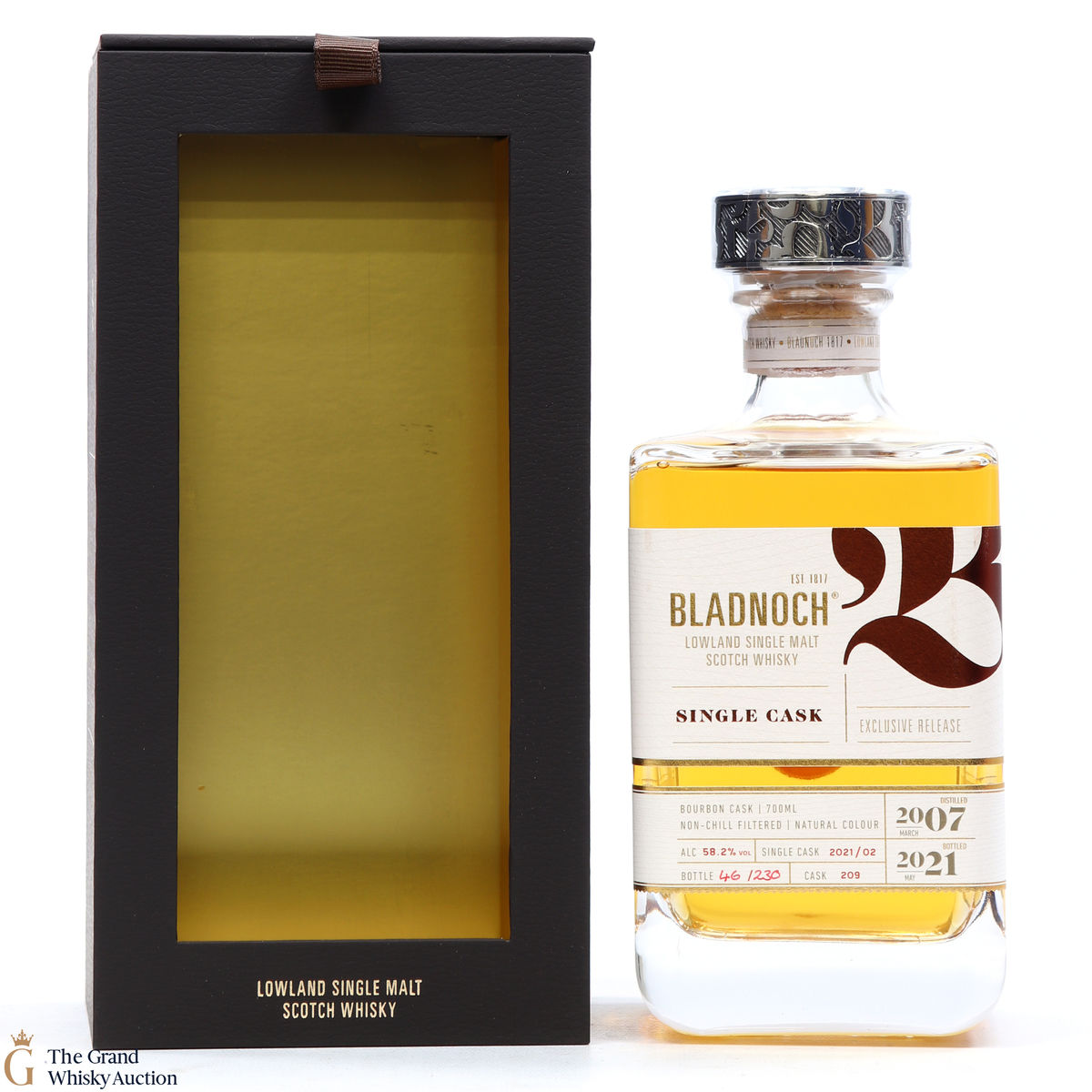 Distilled in 2007 and bottled in 2021 this single cask Bladnoch was matured in a bourbon cask #209. Only 230 bottles were released.