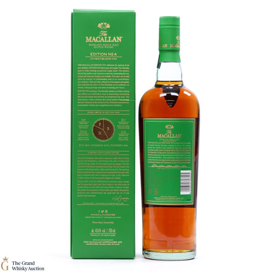The fourth release in the Edition Series from The Macallan, this Speyside single malt is a celebration of the distillery's whisky making heritage, combining a unique selection of oak cask styles. Edition No.4 reflects the craftsmanship and pioneering design of the new Macallan distillery.