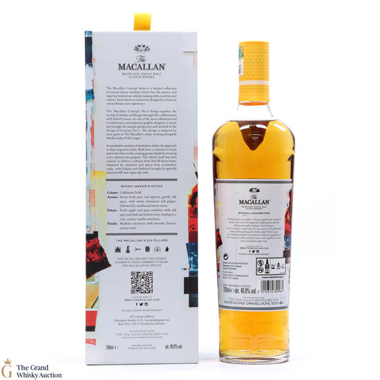 This wonderfully designed Macallan is the 3rd and final release in the Concept series. This edition brings together whisky and design through their collaboration with David Carson, a revolutionary graphic designer. The whisky itself was matured in fresh fill sherry butts and ex-bourbon barrels. Bottled at 40.8% ABV, the Macallan Concept No.3 is a fitting end to the creative series.