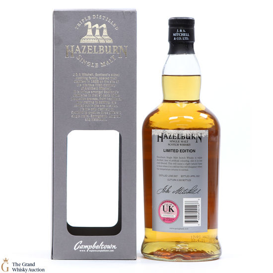 Distilled in June 2007 at Hazelburn Distillery in Campbeltown, this single malt underwent maturation for 13 years before being bottled in April 2021. This rare bottling is one of only 6300 produced.