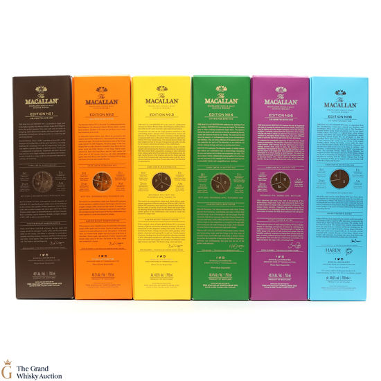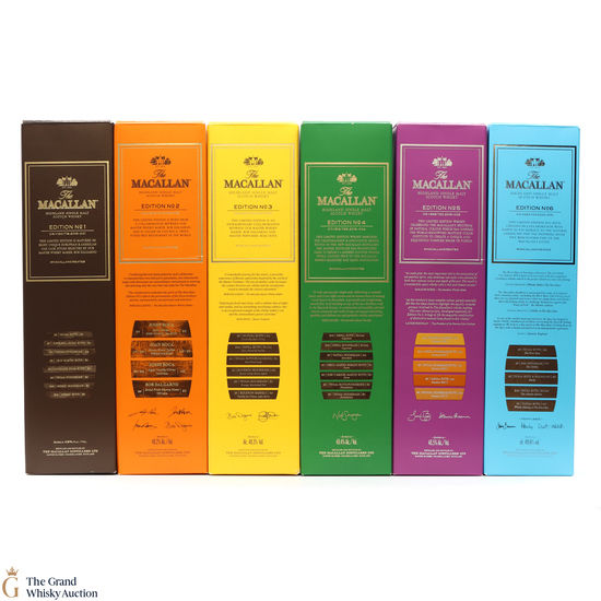 This lot brings together the Macallan Edition set to date, comprising of Edition no. 1, 2, 3 4, 5 & 6 in the annual limited edition series.