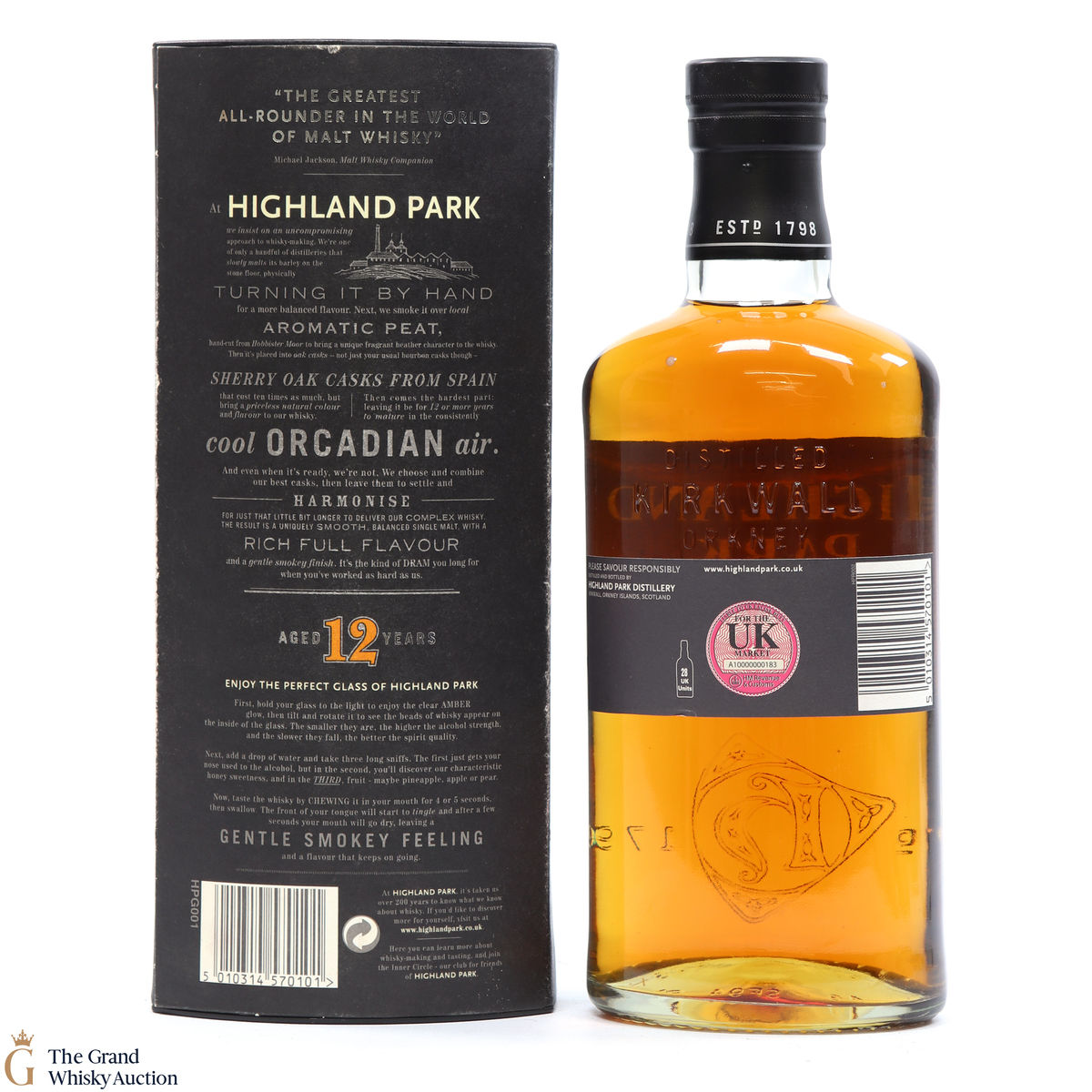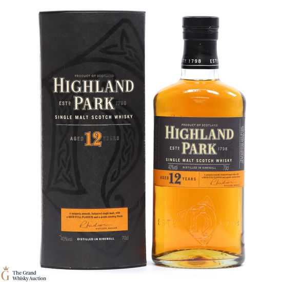 Highland Park 12 year old - one of the best malts in the world year on year. This bottling has been in its core range for over 100 years. This design of the bottle was used by Highland Park from 1999 to the early 2000s.