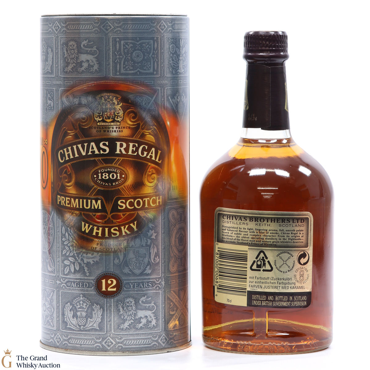 Chivas 12-Year-Old limited edition gift tin is a multi-award winning premier scotch whisky, an artful blend of many different malts and grain scotch whiskies, matured for at least 12 years.