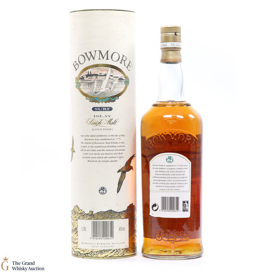 Bottles for the travel retail market, this Bowmore has a nose of sea spray and peat smoke. The Bowmore distillery is the oldest established one on Islay. It was founded in 1779.