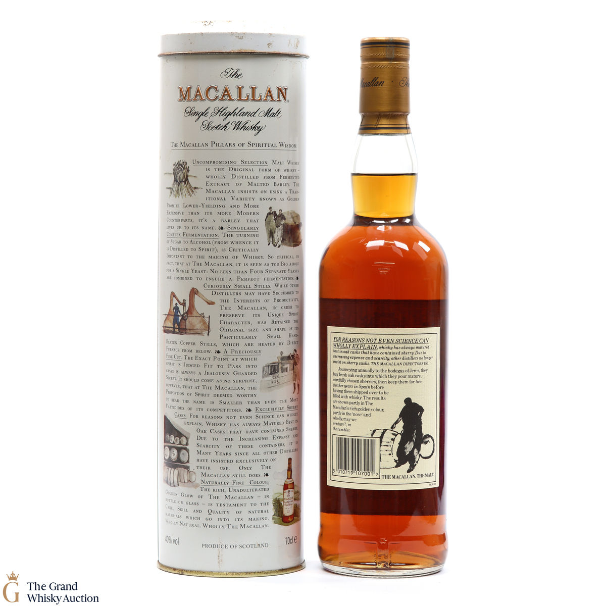 A 1990's bottling of 10 year old Macallan, matured in sherry wood with a presentation tin depicting Easter Elchies House.