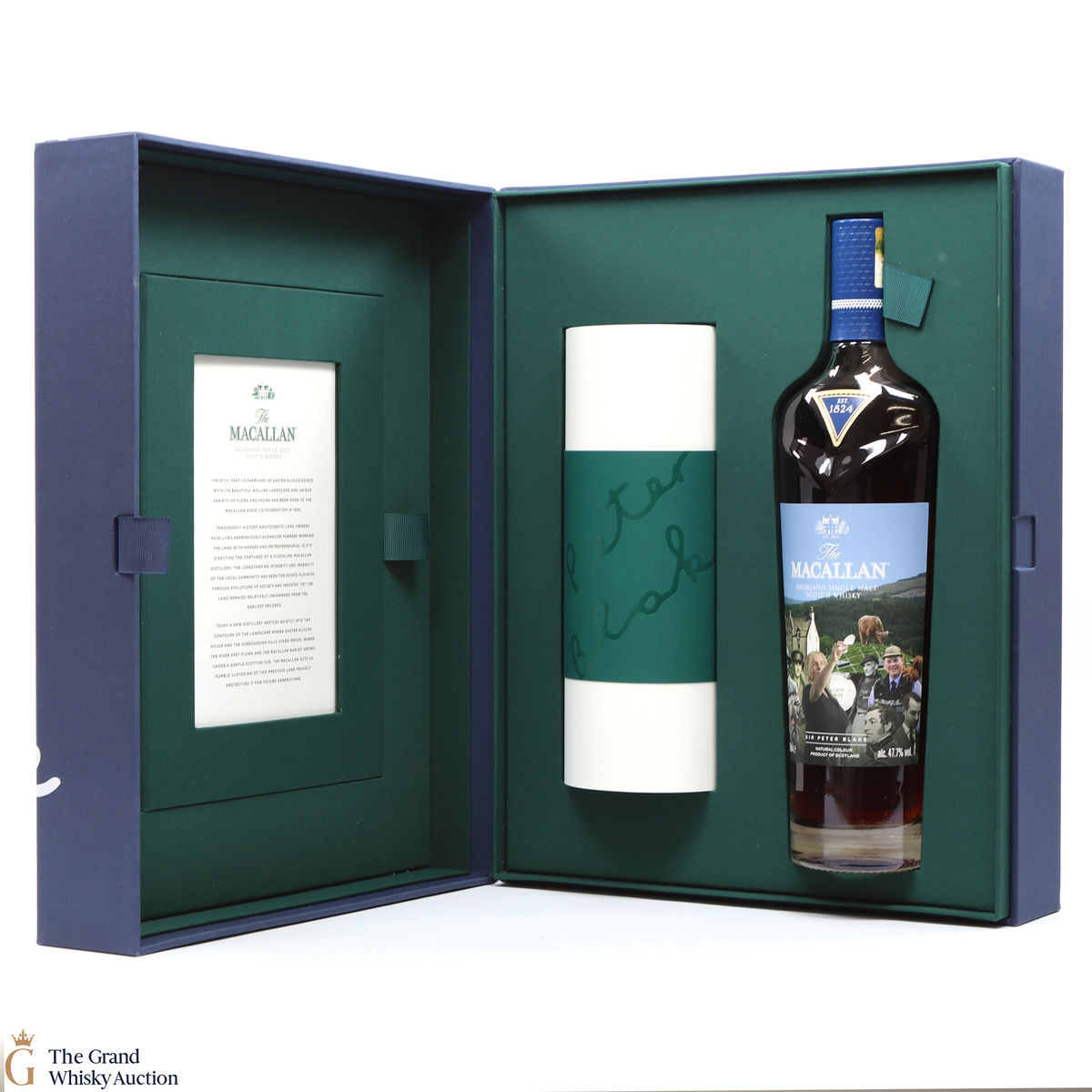 Along with this unique bottle of whisky is a scroll of artwork showing Sir Peter Blake's distinct style and a certificate detailing the history and heritage on which Sir Peter's art was based. There is also a piece of tracing paper which provides information on each character from The Macallan's history that Sir Peter chose to include in his art.