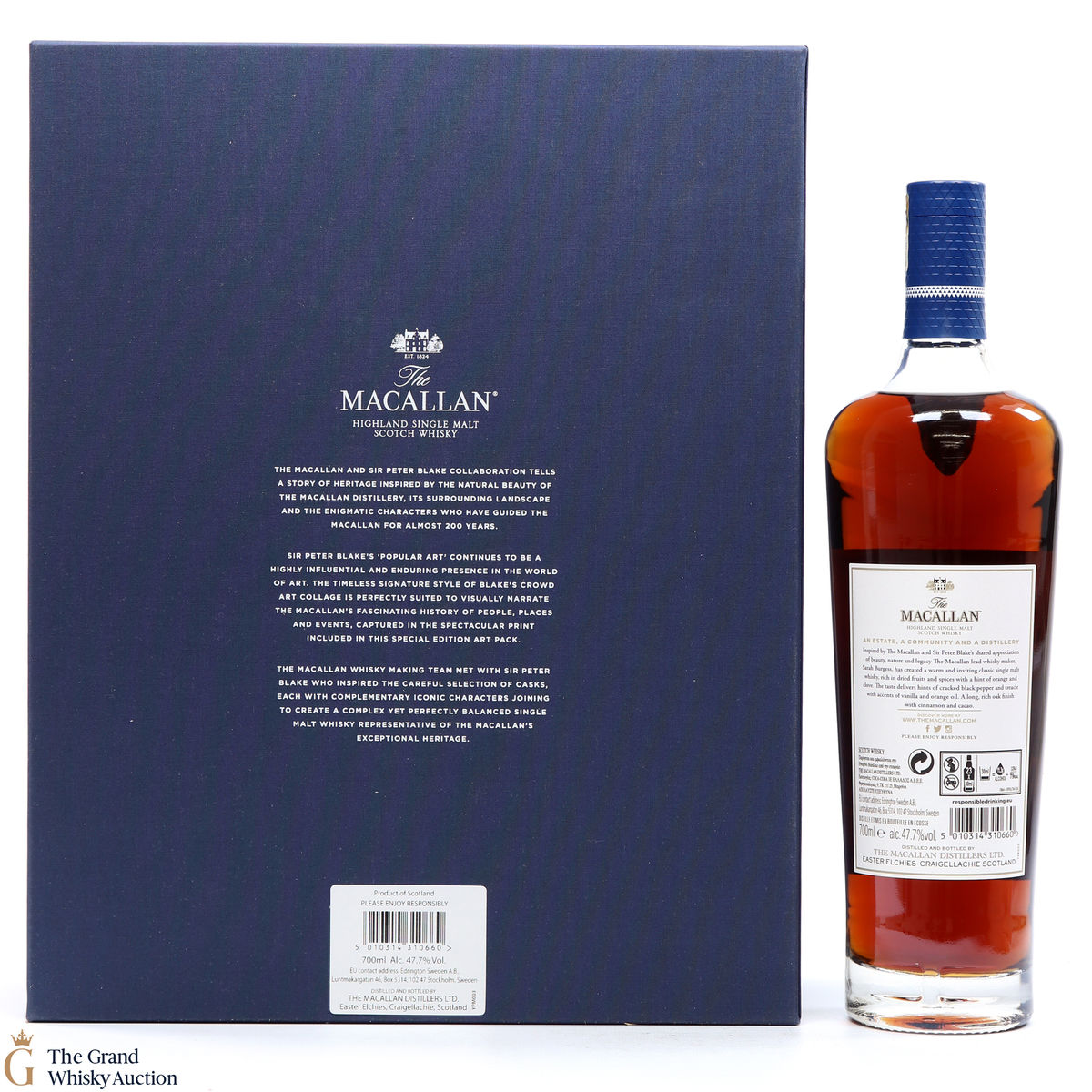 Part of The Anecdotes of Ages Collection, this is an extraordinary art and whisky collaboration with Sir Peter Blake. Being the third collaboration between the Macallan Distillery and Sir Peter Blake, this single malt was created to commemorate Sir Peter Blake's visit to The Macallan Estate. An Estate, a Community and a Distillery tells the story of some of the colourful characters from the distilleries past and present and features a label designed by Sir Peter Blake.
