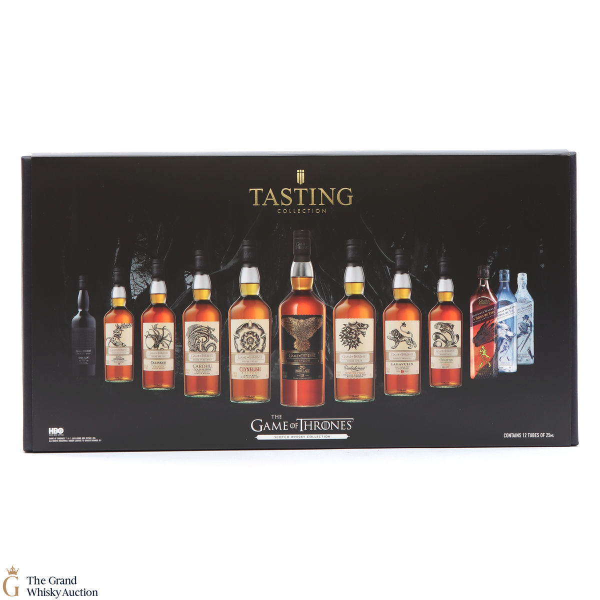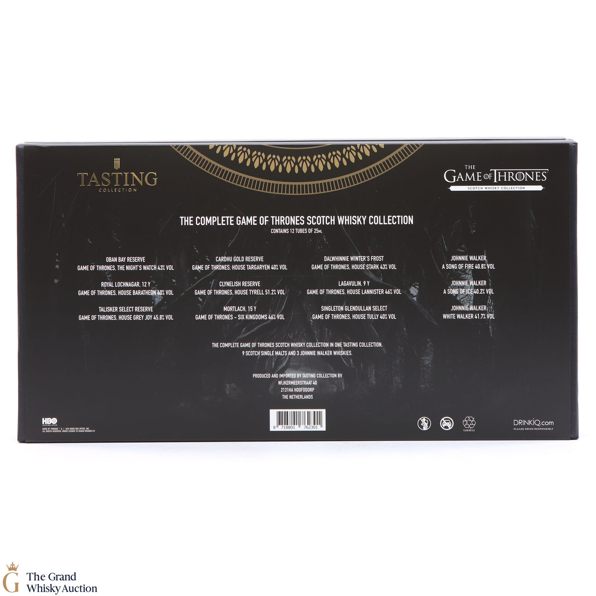This unique tasting collection includes the entire Game of Thrones Whisky set in 2.5cl test tubes: