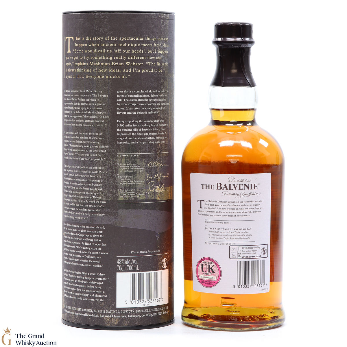 This is the introductory release from The Balvenie Stories range. Celebrating Kelsey McKechnie's idea to import virgin oak barrels from Kentucky and deeply toast them at the distillery's cooperage. They were then filled with Balvenie's ex-bourbon oak aged whisky for a finishing period.
