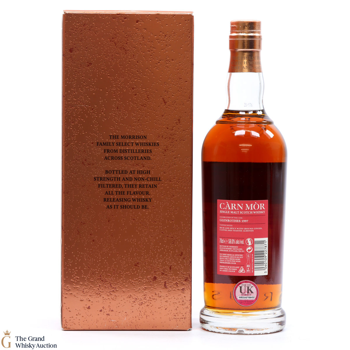 Distilled in 1997 at Glenrothes Distillery, this single malt was matured in a sherry butt before being bottled in 2020 Carn Mor.