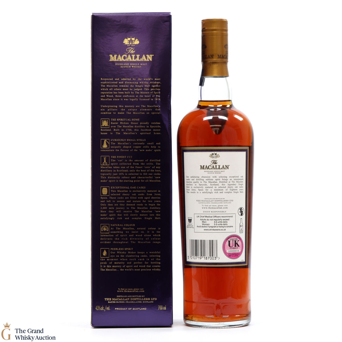 This Macallan 18 Year Old Single malt was bottled in 2016 in Speyside Scotland. This classic was one of the last bottles in this shape. It is now becoming rarer and a staple item in a collectors cellar!