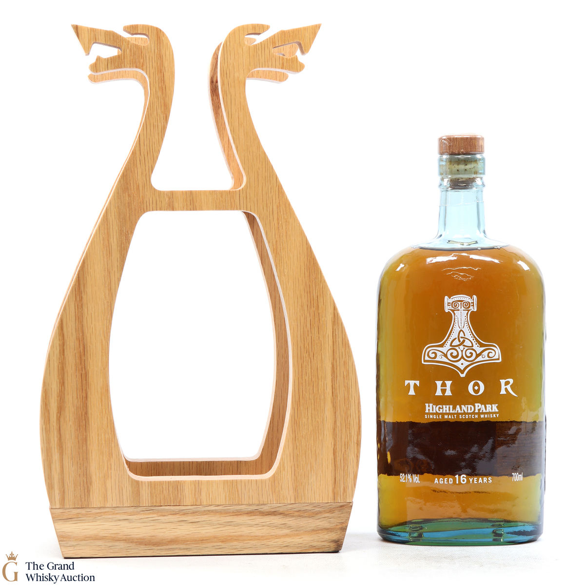 - Thor - is a 16-Year-Old single malt named after the Norse God of Thunder and alleged architect of the Cliffs of Yesnaby on the west coast of Orkney Mainland. This bottling comes with a striking wooden stand that resembles a Viking boat. 51.2% ABV, 70cl